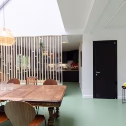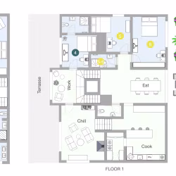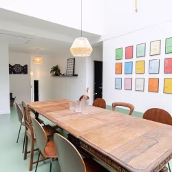 Vous profiterez également des espaces communs, tels qu'une grande cuisine, un salon-salle à manger, une buanderie et un immense jardin. Consultez le plan dans la section photos pour identifier les pièces correspondant à cette description. Nous disposons de 2 chambres avec une salle de bains et des toilettes communes (2 personnes par salle) et de 4 chambres avec leur propre salle de bains et leurs propres toilettes.